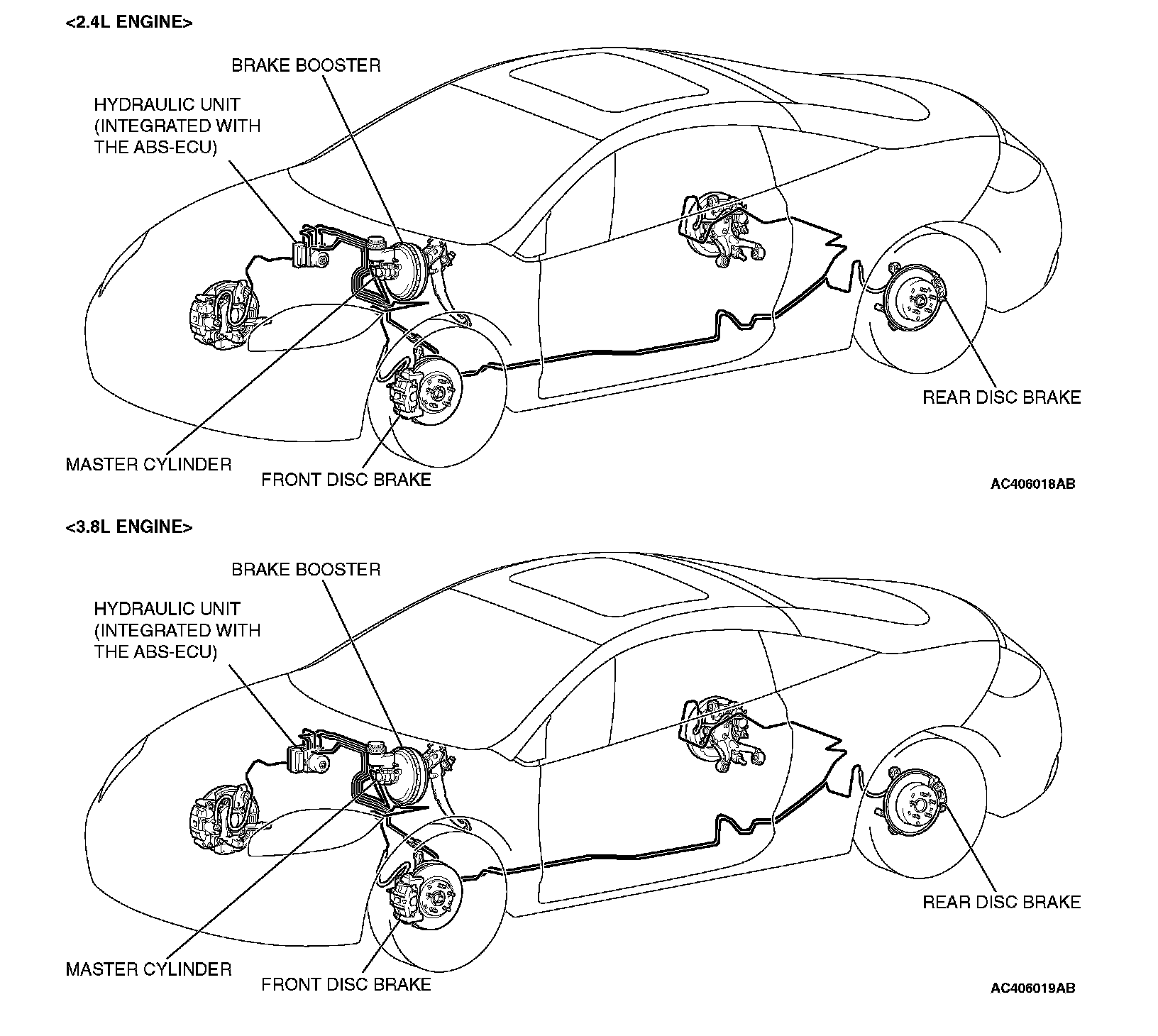 3. 14-inch rear solid disc brakes are used.[2.4L engine]