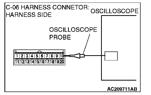 2. Connect the oscilloscope probe to terminal 10 of the multi-center display unit connector by backprobing.
