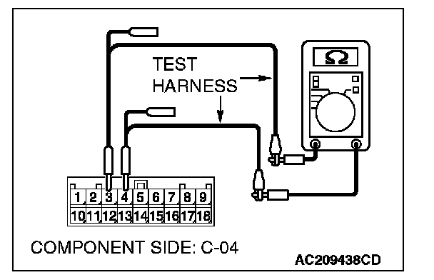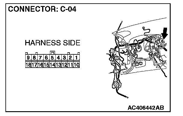 1. Disconnect combination meter C-04, and measure the resistance at the component side of combination meter connector C-04.