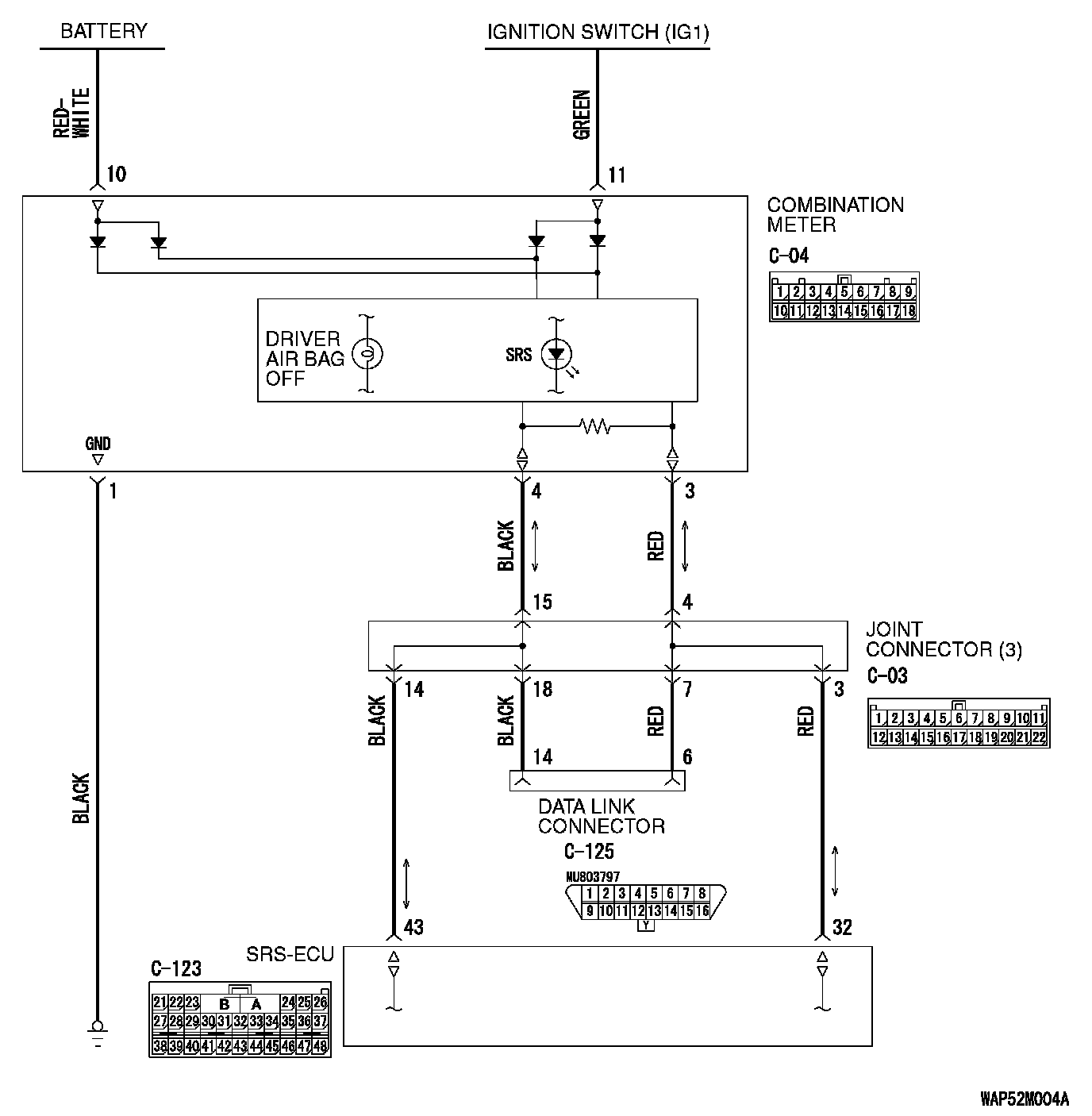 - The SRS-ECU sends the SRS warning light signal to the combination meter via the CAN communication.