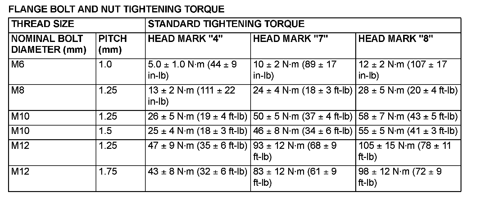 FLANGE BOLT AND NUT TIGHTENING TORQUE