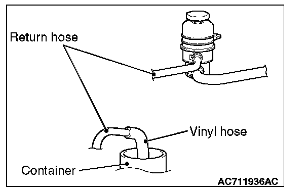 2. Disconnect the return hose connection, and then connect a vinyl hose to the return hose, and drain the fluid into a container.