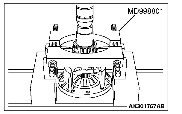 1. Support the taper roller bearing with special tool MD998801, and then set them on the press.