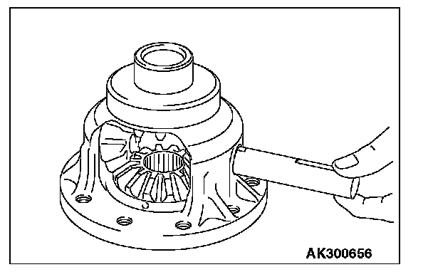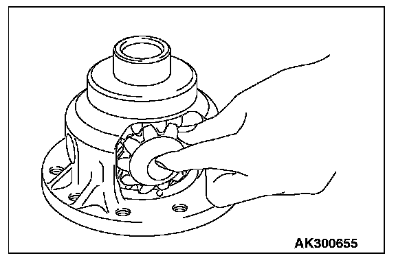 1. Mount a spacer on the back surface of the side gear, and then install the side gear in the differential case.