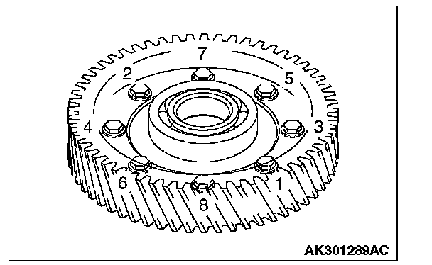 Apply ATF to the bolt, and then tighten the bolts to the specified torque in the sequence shown.