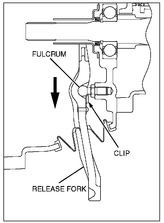 Move the release fork in the direction shown to remove the clip from the fulcrum.