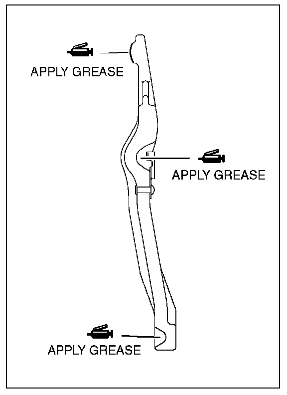 1. Apply Mitsubishi Part number 0101011 or equivalent to the illustrated positions of the release fork.