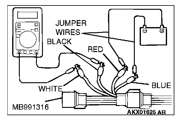 1. Disconnect the heated oxygen sensor connector and connect special tool MB991316 to the connector on the heated oxygen sensor side.