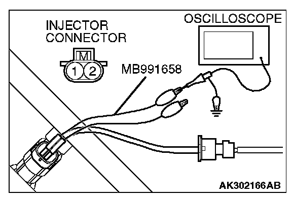 1. Disconnect the injector connector, and connect the test harness special tool (MB991658) between the separated connector. (All terminals should be connected.)