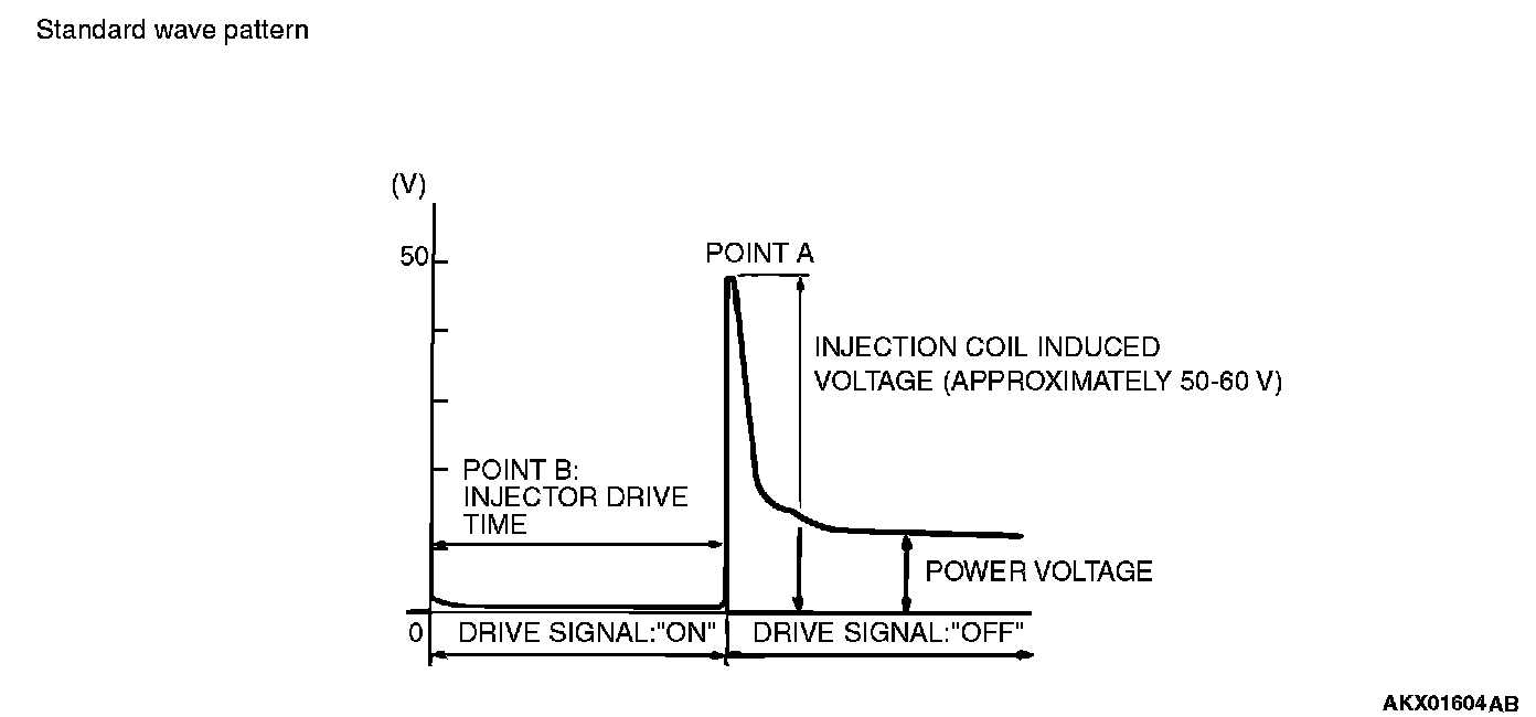 Point A: Presence or absence of induced electromotive force from the motor turning. (Refer to abnormal wave pattern.)