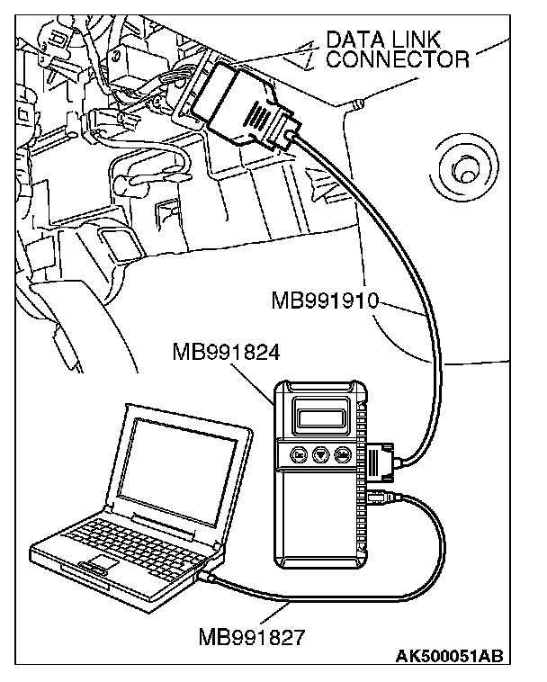 5. Connect special tool MB991910 to the data link connector.