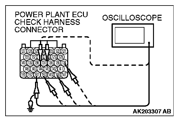 2. Connect the oscilloscope probe to each check harness connector terminal to analyze each cylinder:
