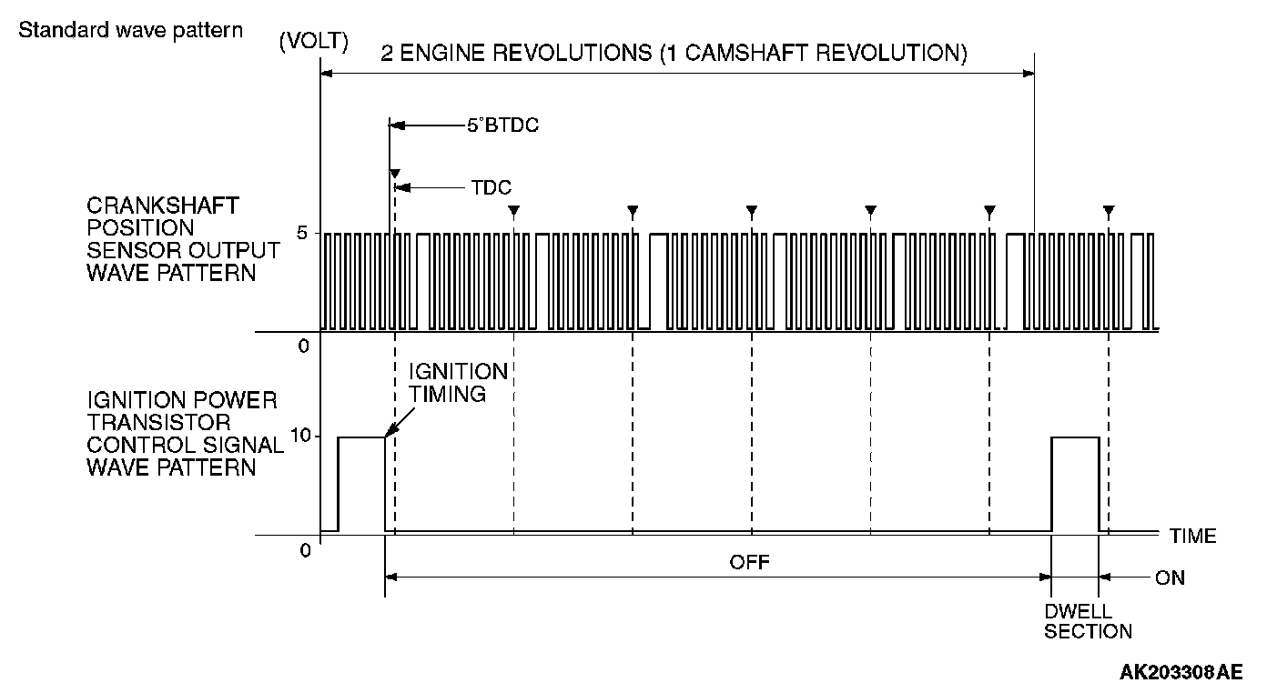 Point: The power transistor control signal (ignition timing) is advanced when the engine speed is increased.