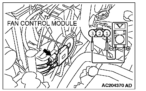FAN CONTROL MODULE CHECK [3.8L ENGINE]1. Remove the fan control module connector.