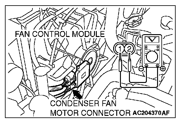 8. If the voltage does not repeatedly change as indicated, replace the radiator fan motor.