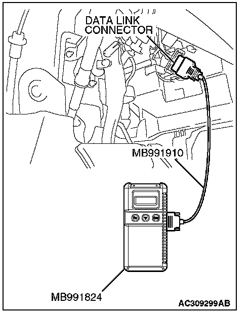 3. Connect special tool MB991824 (V.C.I.) to the data link connector.