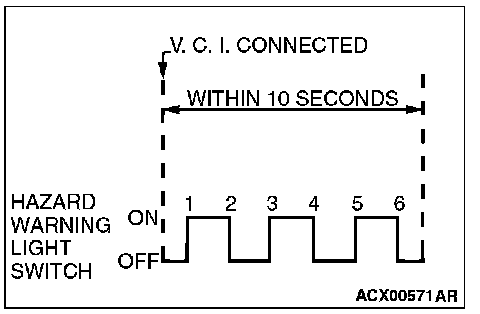 CAUTION: To prevent damage to special tool MB991824 (V.C.I.), always turn the ignition switch to "LOCK" (OFF) position before connecting or disconnecting special tool MB991824 (V.C.I.).