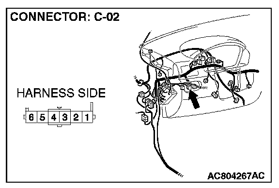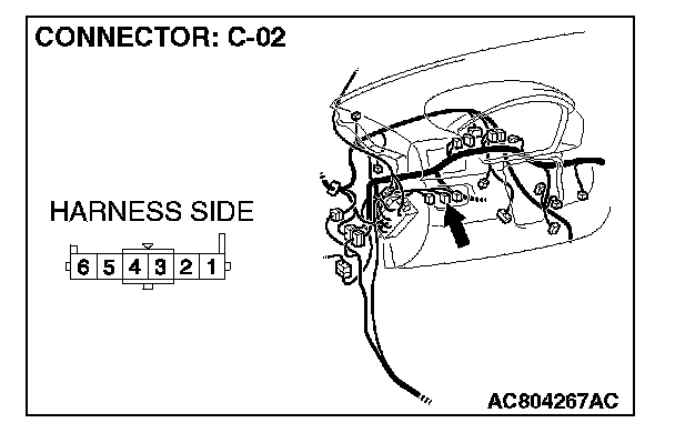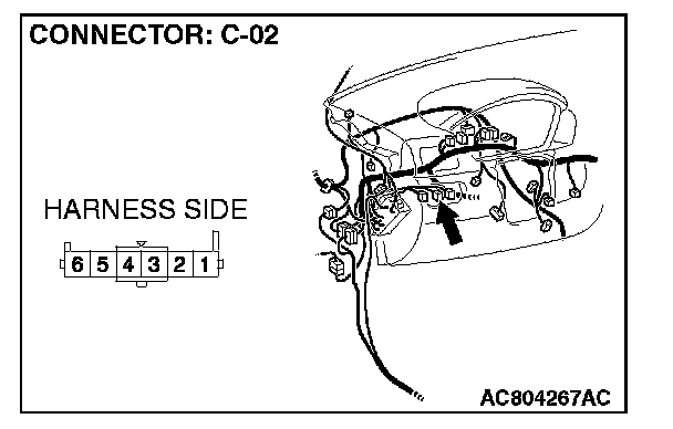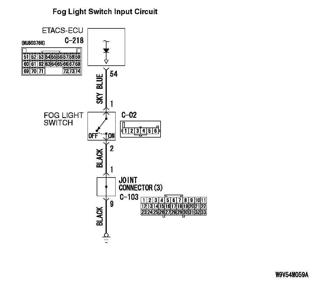 STEP 6. Check the wiring harness between fog light switch connector C-02 (terminal 1) and ETACS-ECU connector C-218 (terminal 54).