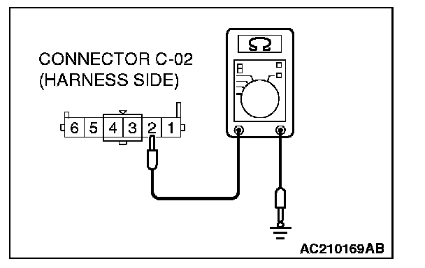 1. Disconnect fog light switch connector C-02 and measure the resistance available at the wiring harness side of the connector.