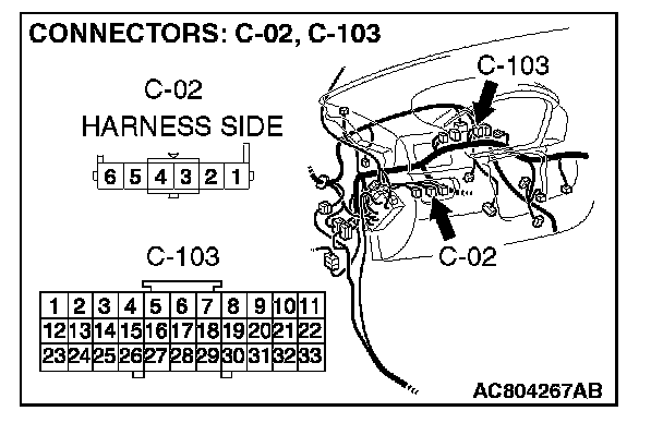 NOTE: Also check joint connector C-103 for loose, corroded, or damaged terminals, or terminals pushed back in the connector. If joint connector C-103 is damaged, repair or replace the damaged component(s).