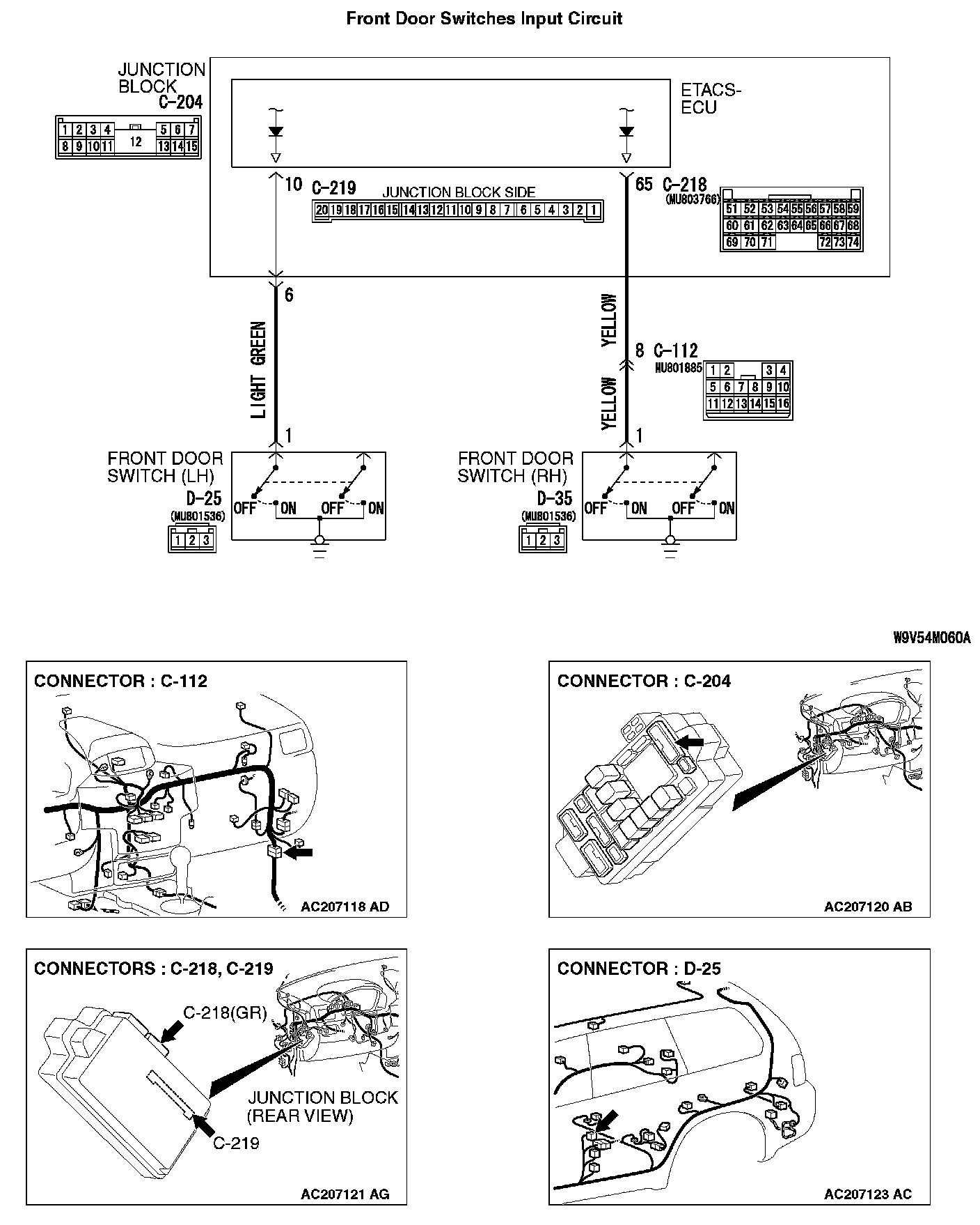 INSPECTION PROCEDURE O-4: ETACS-ECU Does Not Receive One Of Signal From The Driver's Or The Front Passenger's Door Switch.Front Door Switches Input Circuit (Part 1):