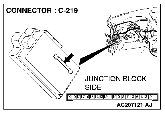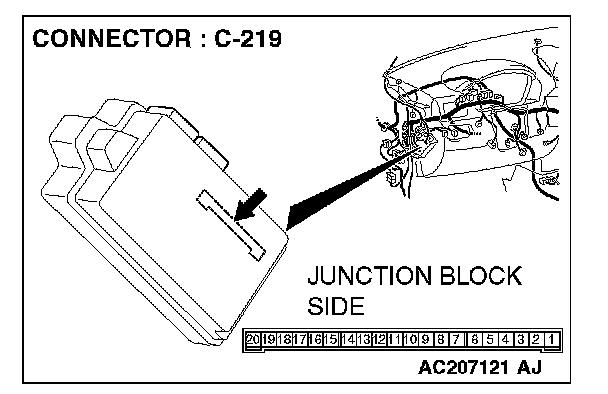 STEP 5. Check ETACS-ECU connector C-219 for loose, corroded or damaged terminals, or terminals pushed back in the connector.