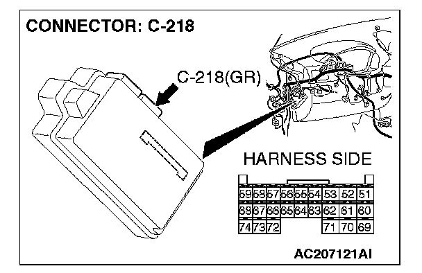 STEP 10. Check ETACS-ECU connector C-218 for loose, corroded or damaged terminals, or terminals pushed back in the connector.