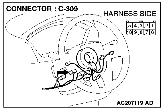 STEP 1. Check column switch connector C-309 for loose, corroded or damaged terminals, or terminals pushed back in the connector.