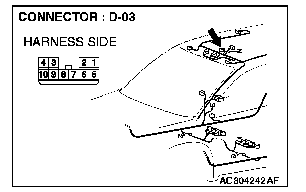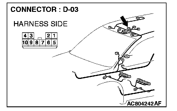 STEP 5. Check the wiring harness between sunroof assembly connector D-03 (terminal 10) and ETACS-ECU connector C-218 (terminal 59).
