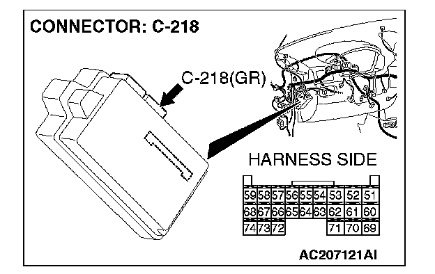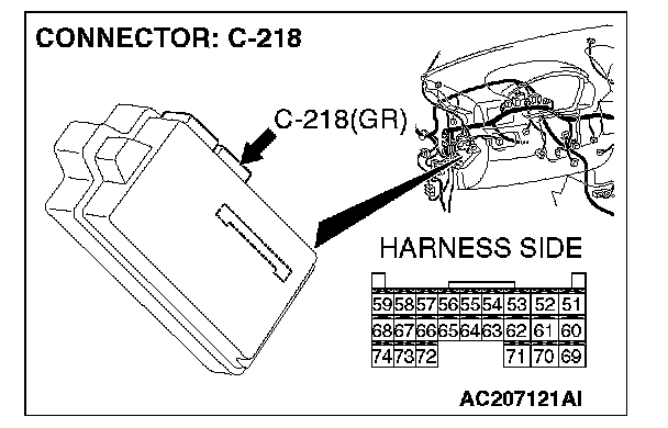 STEP 4. Check ETACS-ECU connector C-218 for loose, corroded or damaged terminals, or terminals pushed back in the connector.