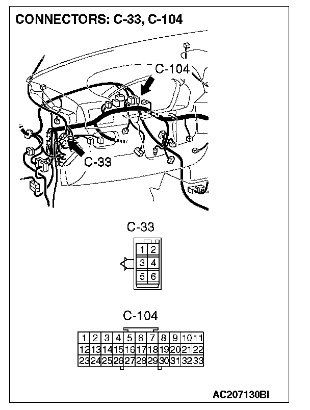 NOTE: Also check intermediate connector C-33 and joint connector C-104. If intermediate connector C-33 or joint connector C-104 are damaged.