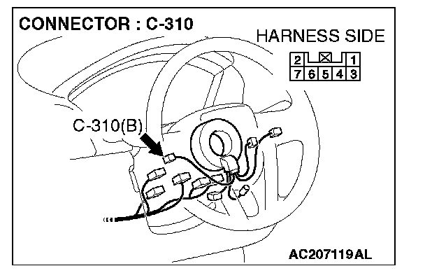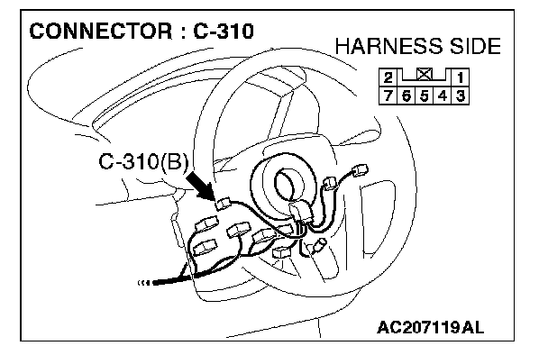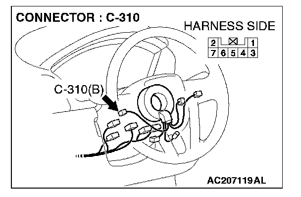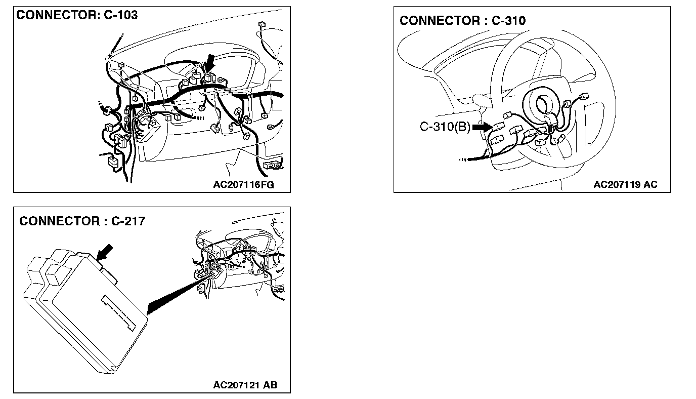STEP 1. Check key reminder switch connector C-310 for loose, corroded or damaged terminals, or terminals pushed back in the connector.