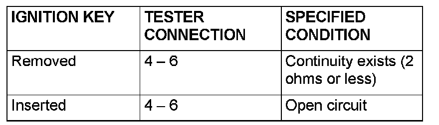 Disconnect key reminder switch connector C-310. Then check continuity between terminals.