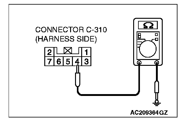 STEP 4. Check the wiring harness between key reminder switch connector C-310 (terminal 4) and ground.