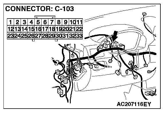 NOTE: Also check joint connector C-103 for loose, corroded, or damaged terminals, or terminals pushed back in the connector. If joint connector C-103 is damaged, repair or replace the damaged component(s).