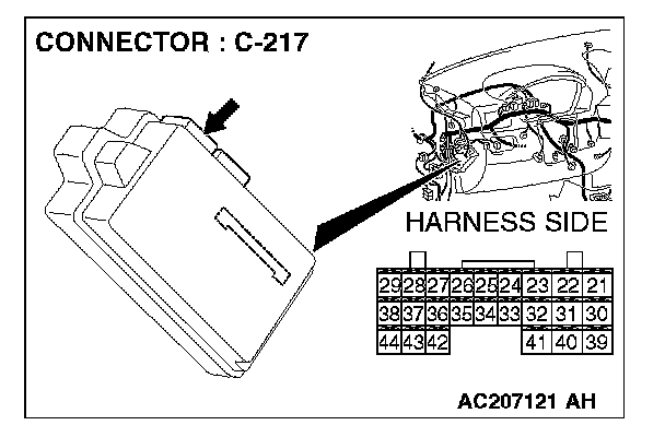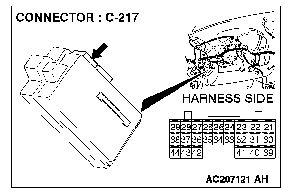 STEP 5. Check ETACS-ECU connector C-217 for loose, corroded or damaged terminals, or terminals pushed back in the connector.
