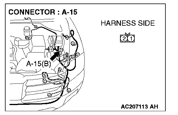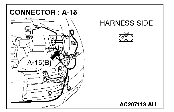 STEP 1. Check hood switch connector A-15 for loose, corroded or damaged terminals, or terminals pushed back in the connector.