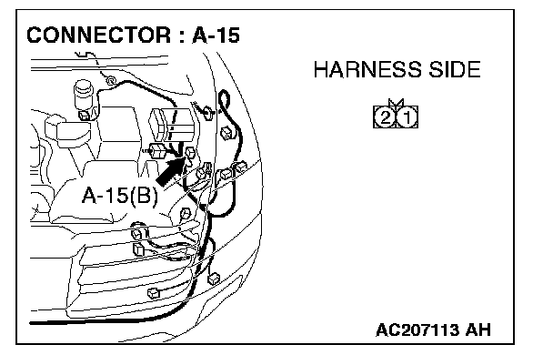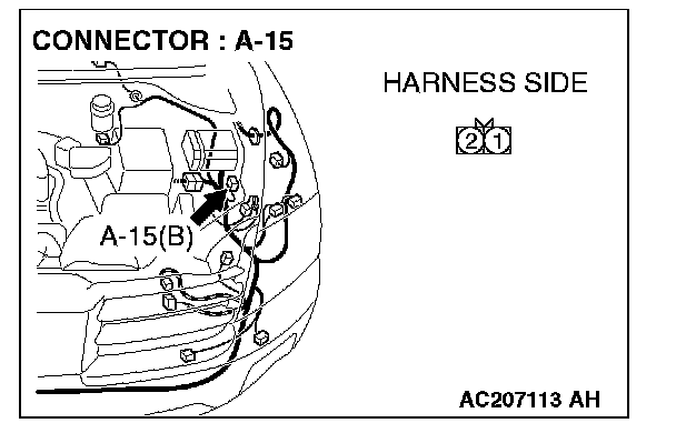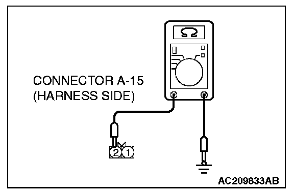STEP 3. Check the ground circuit to the hood switch. Measure the resistance at hood switch connector A-15.