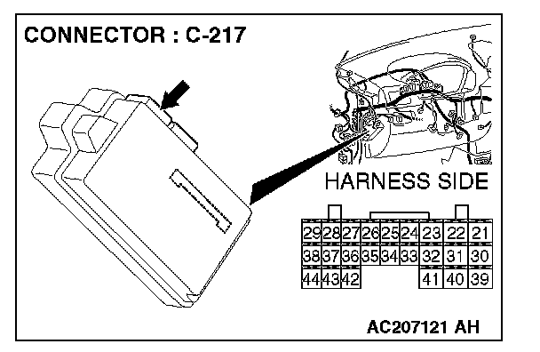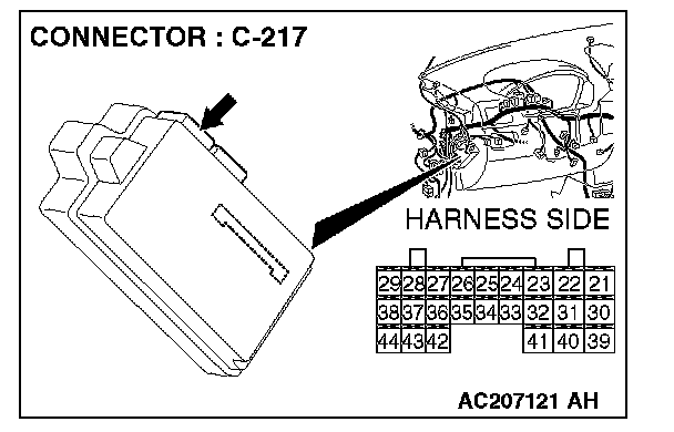 STEP 5. Check ETACS-ECU connector C-217 for loose, corroded or damaged terminals, or terminals pushed back in the connector.