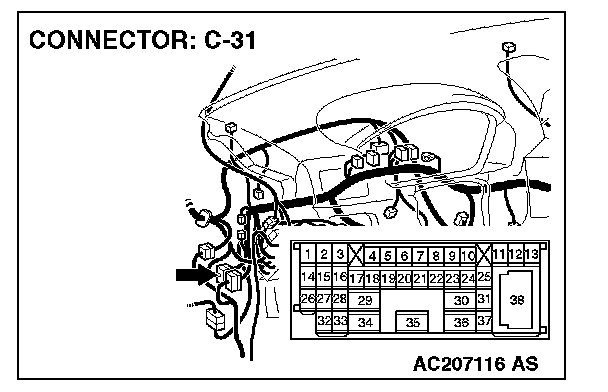 NOTE: Also check intermediate connector C-31 for loose, corroded, or damaged terminals, or terminals pushed back in the connector. If intermediate connector C-31 is damaged, repair or replace the damaged component(s).