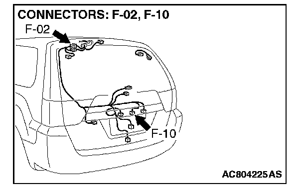 STEP 1. Check liftgate opener switch connector F-10 for loose, corroded or damaged terminals, or terminals pushed back in the connector.