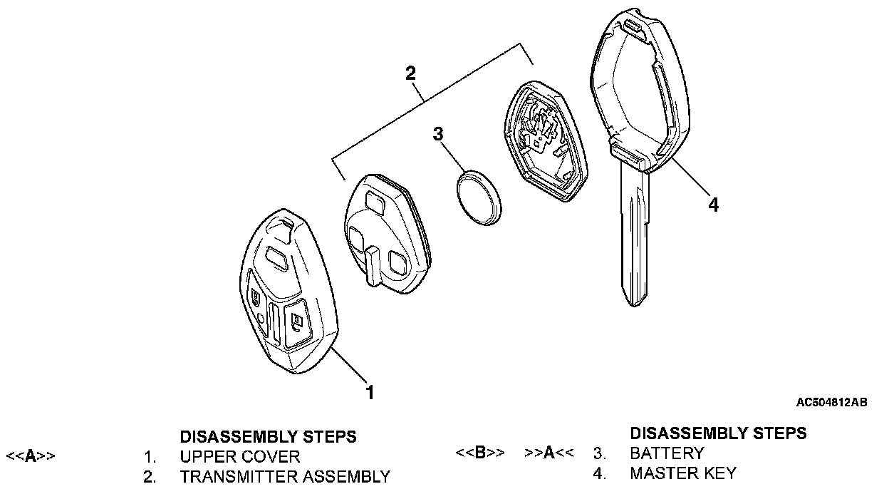 Install a new battery to the transmitter assembly with its (+) side facing towards the master key side.