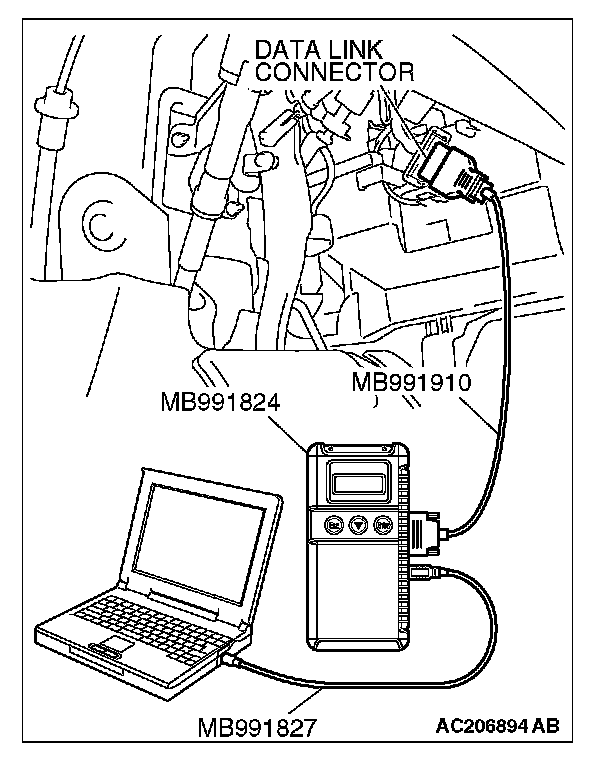 1. Connect scan tool MB991958 to the data link connector.