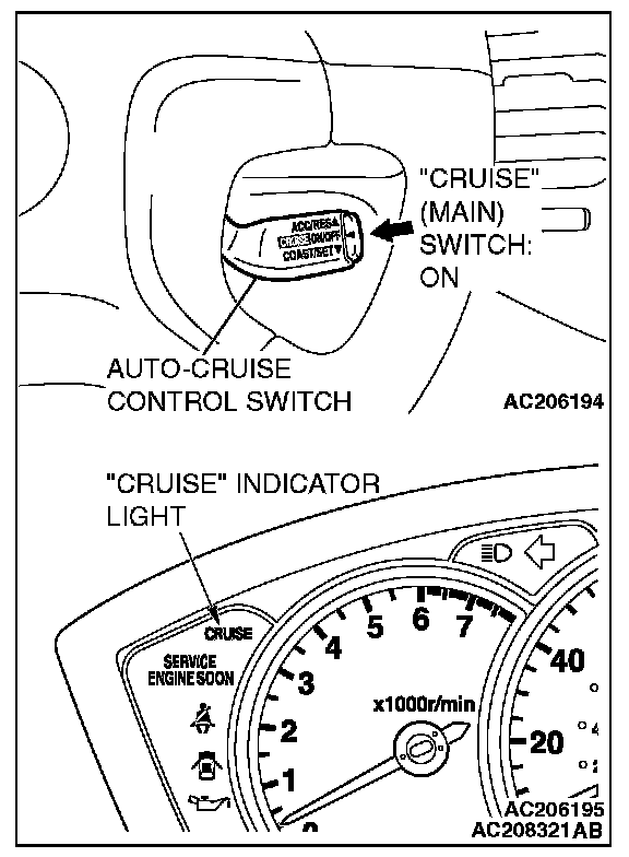 1. Switch "ON" the "CRUISE" (MAIN) switch.