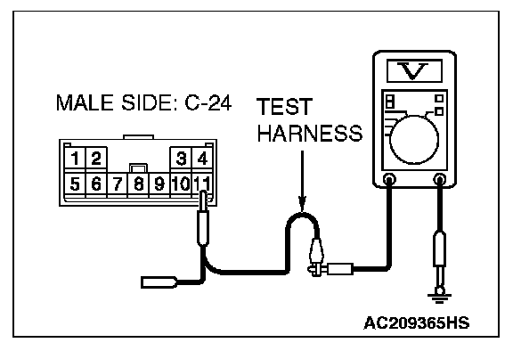 3. Measure the voltage between intermediate connector terminal 11 and body ground.