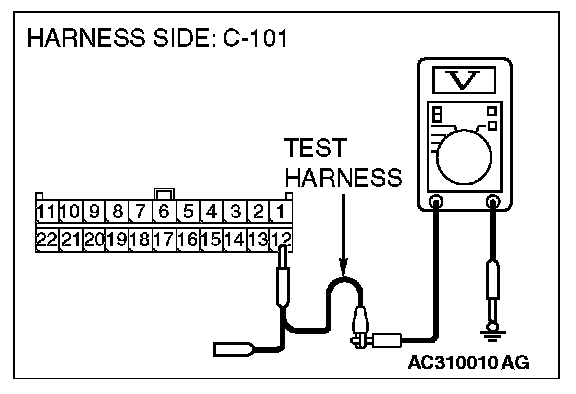 1. Disconnect intermediate connector C-31 and joint connector (4) C-101, and measure the voltage at the wiring harness side of joint connector (4) C-101.