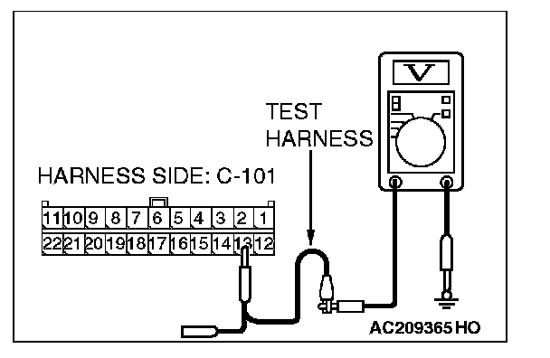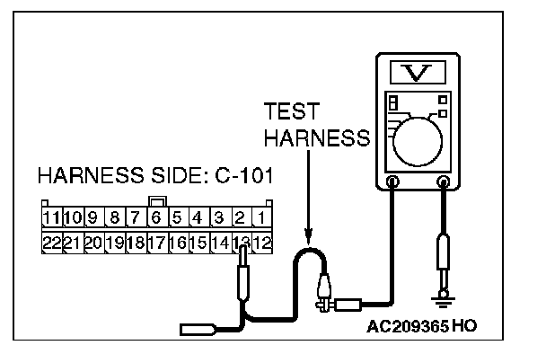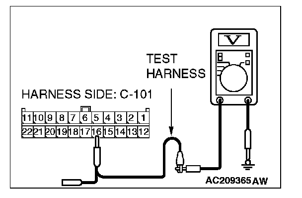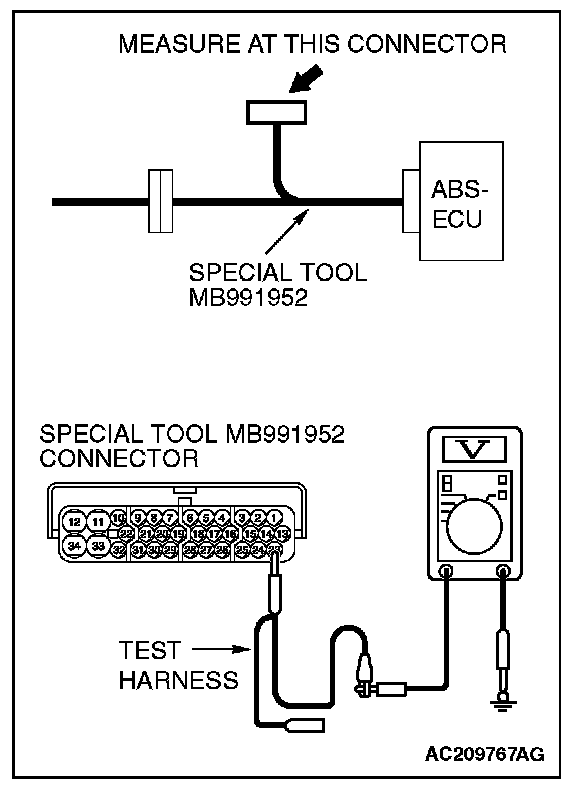2. Connect special tool MB991952 (ABS check harness) to the TCL/ASC-ECU and the wiring harness, and measure the voltage at special tool MB991952 (ABS check harness).