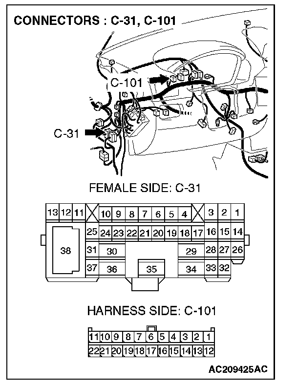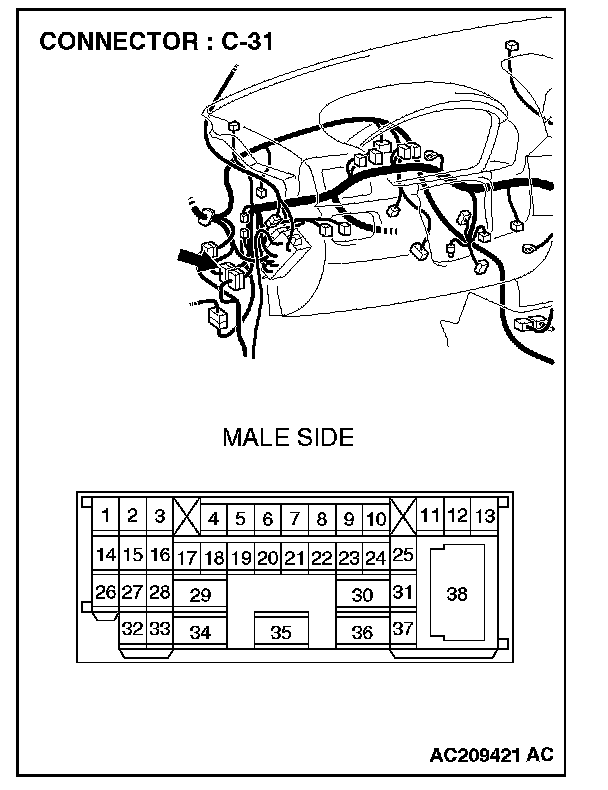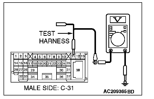 1. Disconnect intermediate connector C-31, and measure the voltage at the male side (at front wiring harness side).