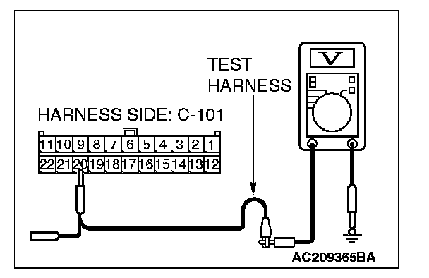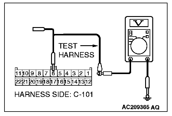 4. Measure the voltage between special tool MB991952 (ABS check harness) connector terminal 23 and body ground.