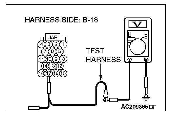 1. Disconnect powertrain control module connector B-18 and TCL/ASC-ECU connector A-32, and measure the voltage at the harness side of powertrain control module connector B-18.